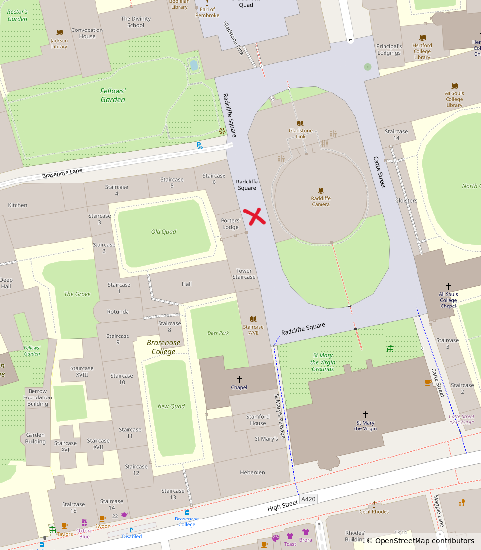 Uptimes will be held at Brasenose College, located on Radcliffe Square; GMs will collect players from the Porter's Lodge a few minutes prior to sessions. If you're running late, just let a GM know, and we can send someone out to fetch you.